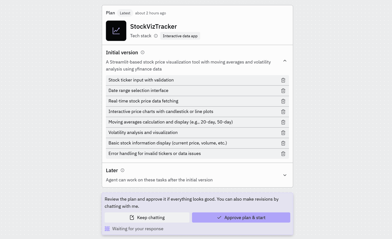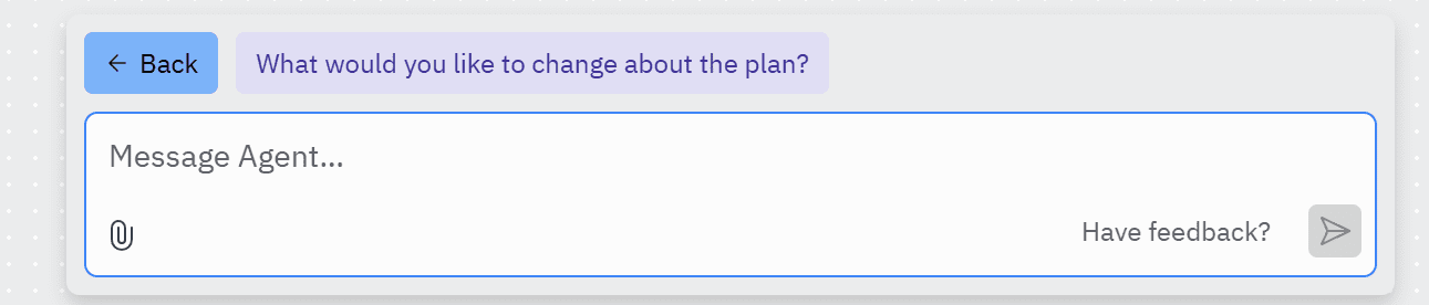 Vous pouvez continuer à discuter avec l’agent pour ajuster les détails du plan proposés par Replit, que vous pouvez ensuite passer dans le formulaire d’entrée, comme indiqué ci-dessous.