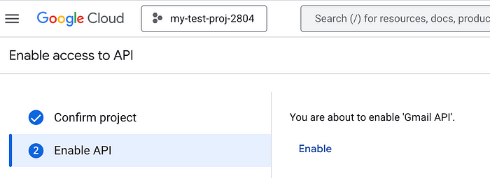 • Activez l’API Gmail pour votre projet en utilisant ce lien.